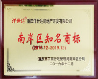? 2017年1月 ,“洋世達”商標獲得重慶工商行政管理局南岸區(qū)分局頒發(fā)的南岸區(qū)知名商標稱號