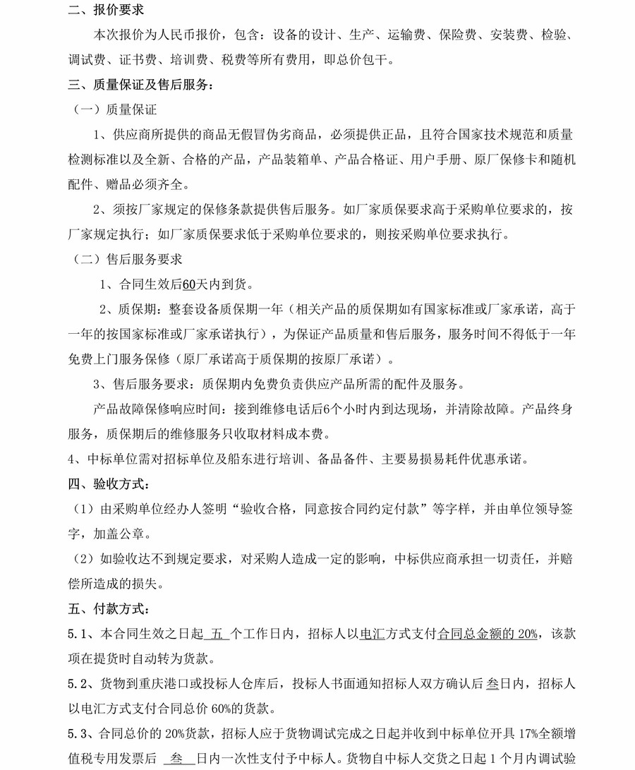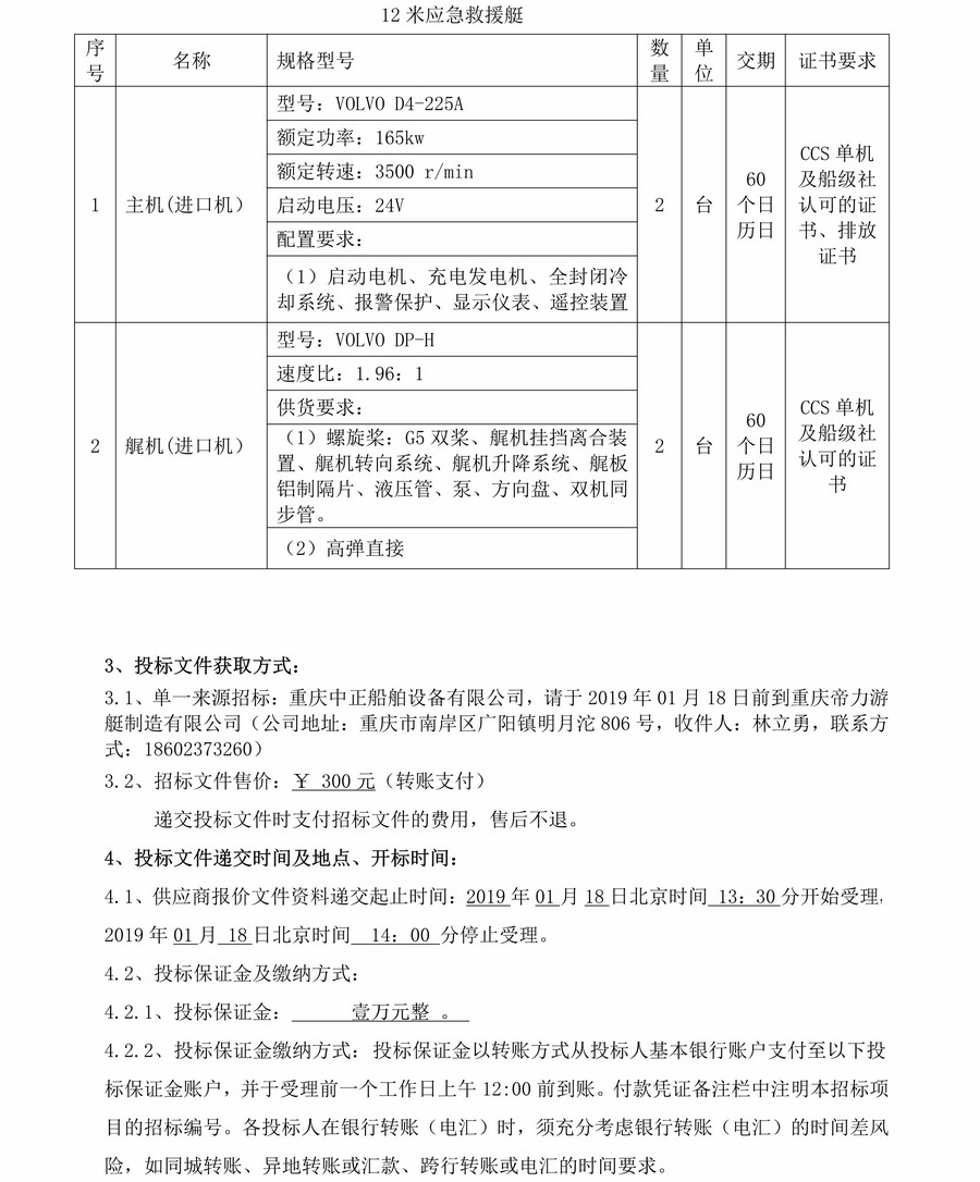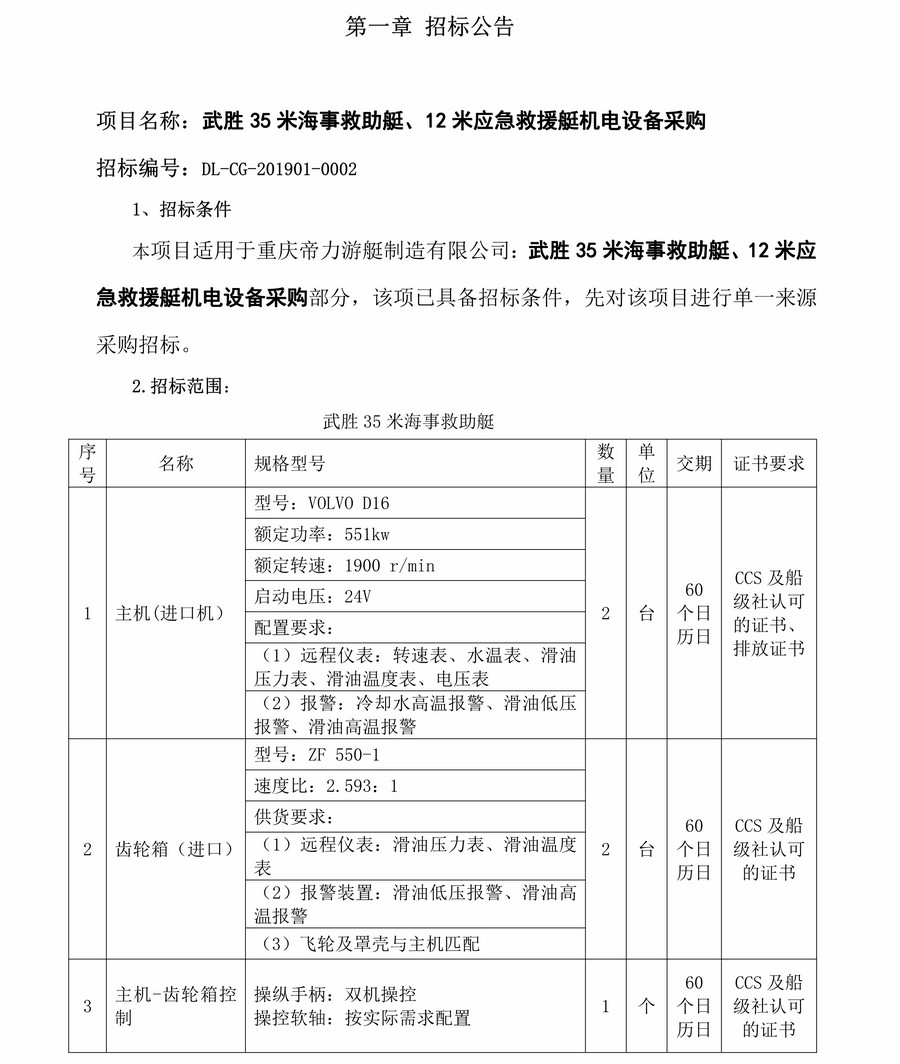 武勝35米海事應(yīng)急救援艇機電設(shè)備采購