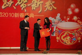 2010年2月11日,南岸美心洋人街金色大廳歡聲笑語(yǔ)、一片歡騰,以“龍騰虎躍賀新春”為主題的“洋世達(dá)集團(tuán)2010年春節(jié)年拜會(huì)”在這里熱烈舉行。活動(dòng)從下午1點(diǎn)30分開(kāi)始,至晚上8點(diǎn)結(jié)束,主要活動(dòng)內(nèi)容有拔河對(duì)抗賽、文藝匯演和互動(dòng)游戲、以及迎新年晚餐等。集團(tuán)公司全體領(lǐng)導(dǎo),各部門(mén)、各子公司員工及部分家屬共500多人歡聚一堂,辭舊迎新,共同慶祝新春佳節(jié)的到來(lái)。
