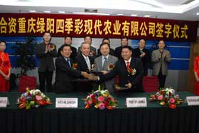 本次簽約儀式由南岸區(qū)人民政府副區(qū)長唐昕主持,共青團中央國際項目合作中心、重慶市農(nóng)業(yè)綜合開發(fā)辦公室、市農(nóng)工委、市農(nóng)業(yè)局、共青團重慶市委等單位的相關(guān)領(lǐng)導(dǎo),以及中共南岸區(qū)委、區(qū)人大、區(qū)政府、區(qū)政協(xié)主要領(lǐng)導(dǎo)及相關(guān)部門領(lǐng)導(dǎo),洋世達集團公司全體領(lǐng)導(dǎo)參加儀式,共同見證了一個由中日合資組建的現(xiàn)代化農(nóng)業(yè)企業(yè)的誕生。