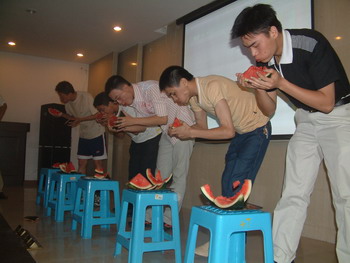 座談會上,集團公司領導通報了公司有關工作情況,并向大家表示節(jié)日的祝賀。大家紛紛表示,要干好本職工作,決不辜負領導的厚望。 隨后,進行了軍歌大家唱和吃西瓜比賽。個個拿出看家本領,掌聲、歡笑聲、吶喊聲、加油聲此起彼伏,將整個活動推向了高潮。