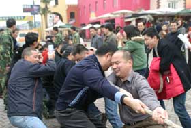 2007年2月15日,“集團(tuán)公司2007年春節(jié)年拜會”新春盛典在美心.洋人街隆重舉行?;顒訌脑缟?點(diǎn)開始,持續(xù)到晚上8點(diǎn)結(jié)束,主要活動內(nèi)容有拔河比賽、文藝表演、發(fā)紅包和聚餐等,集團(tuán)公司、各子公司員工及部分家屬約480人參加了當(dāng)天的活動。