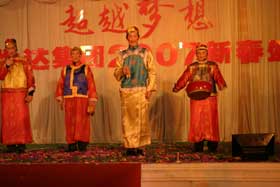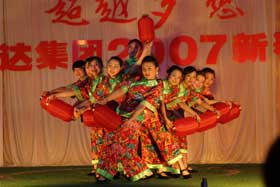 精彩的文藝匯演于下午2:30在金色大廳準(zhǔn)時開始。一陣熱鬧的大鼓后,一群可愛的孩子快樂登場給大家拜大年。集團(tuán)公司董事長、總裁楊勇發(fā)表了熱情洋溢的新年賀辭,并宣布文藝匯演正式開始。在16個文藝節(jié)目表演過程中,各個公司都拿出了看家本領(lǐng),表演了自編自演、精心排練的舞蹈、小品、獨(dú)唱、諧劇、時裝秀等文藝節(jié)目?,F(xiàn)場內(nèi),全體觀眾認(rèn)真觀賞一個個精彩的節(jié)目,興奮地參加游戲,臉上充滿了笑容,一片快樂祥和!